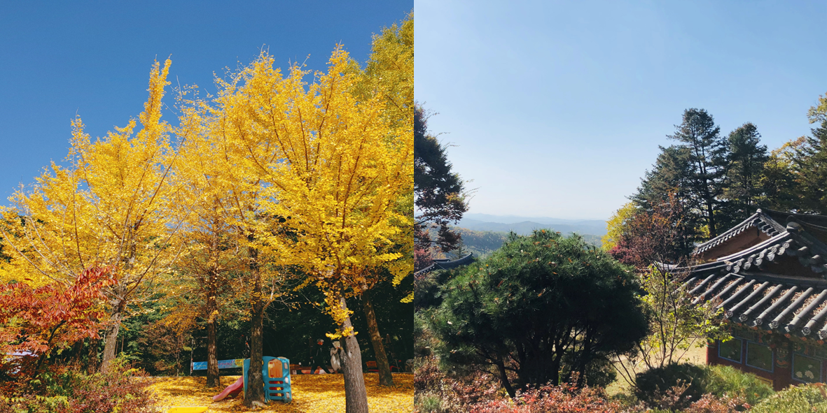 - 부석사까지 걸어 올라가는 길에 노랗게 물든 은행나무 단풍이 아주 예뻐요.
