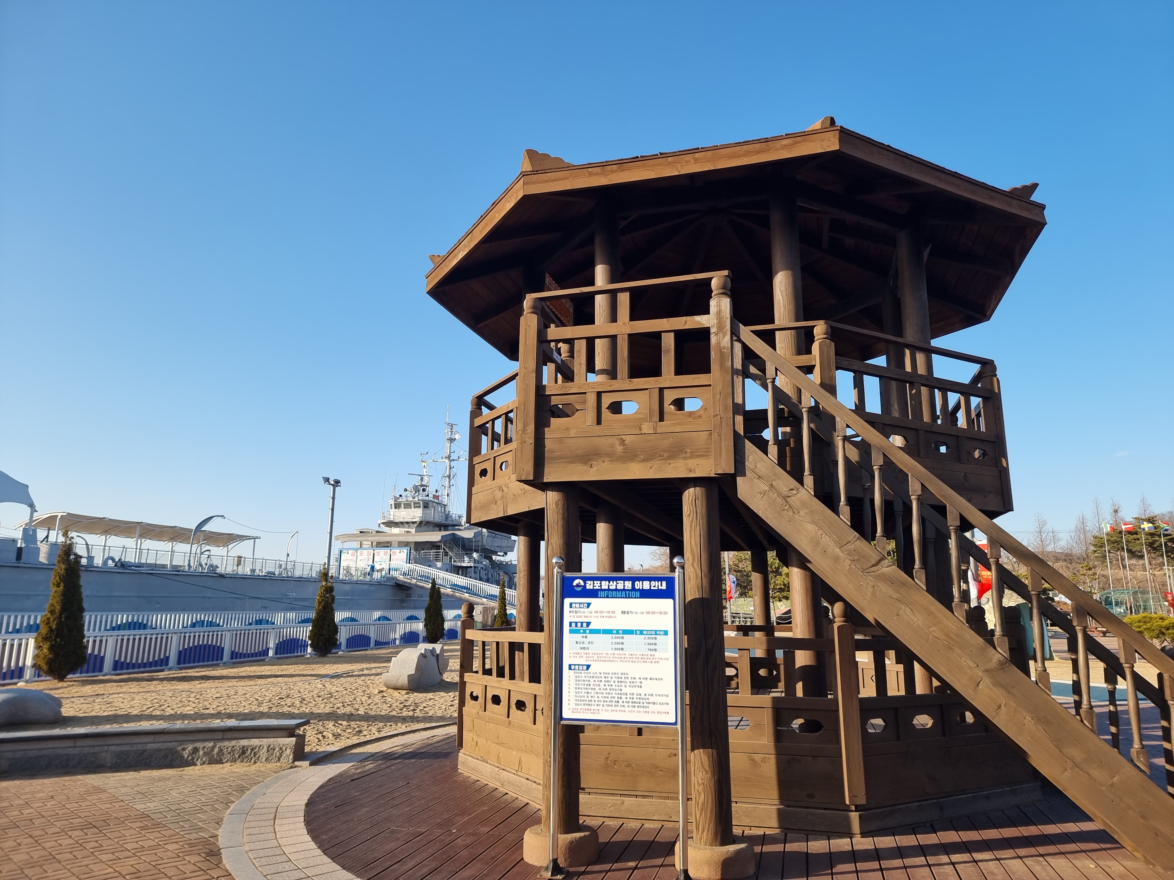 식사를 마치고, 조금 걸어나가니 '김포함상공원'이 있었습니다. 이 곳은 퇴역한 초계 군함 LST-671운봉함을 전시관으로 개조하여 정박하고 있는 공원입니다.. 일반인이 해군 군함 내부를 체험할 수 있는 곳이며, 수도권에서 개장하는 첫 함상공원입니다. 무료는 아니고, 일반인 기준 3천원의 입장료가 있습니다. 저는 들어가지는 않았지만, 들어가면 바다와 갈매기를 더 가까이 볼 수 있었을 것 같네요.