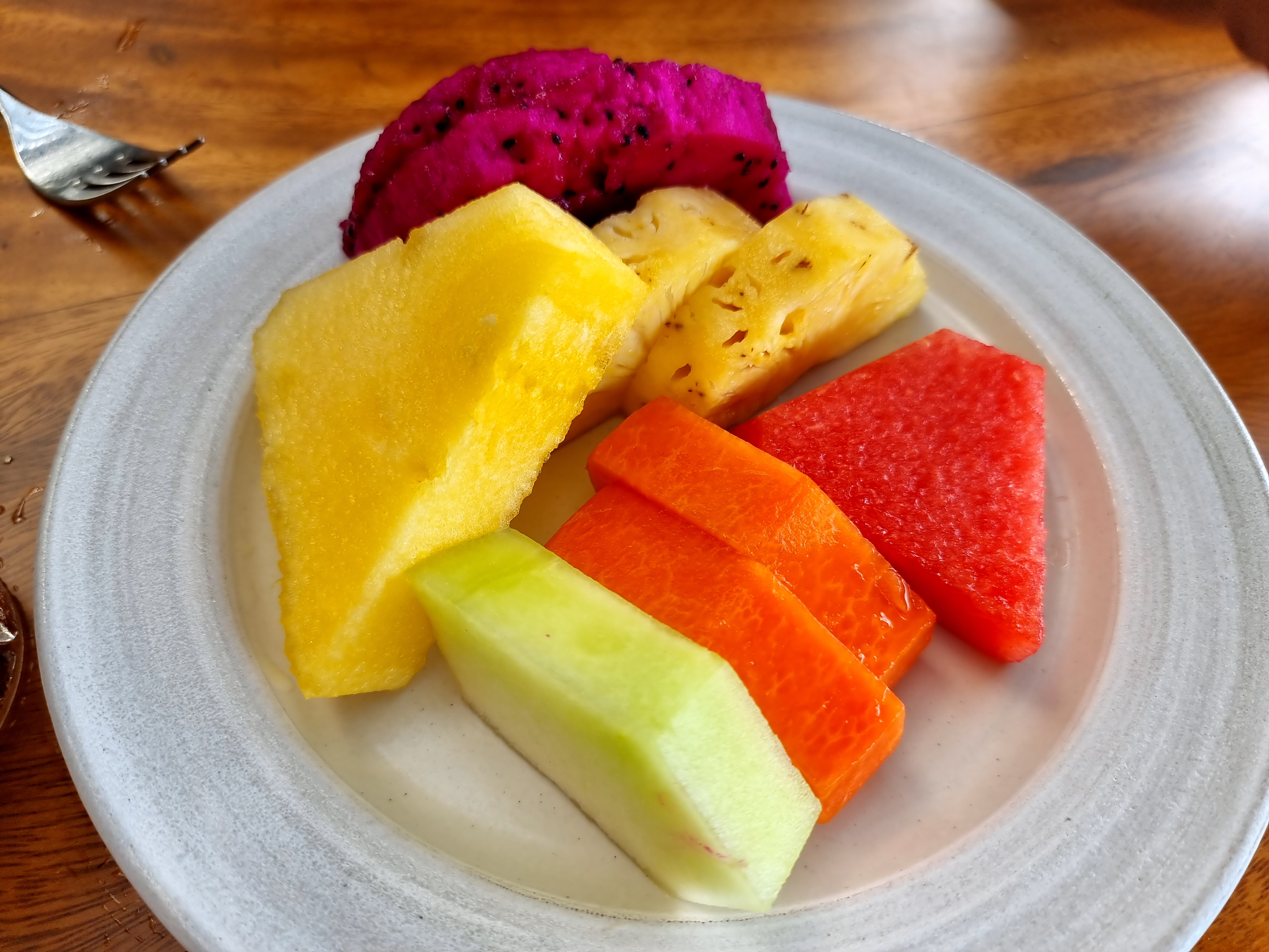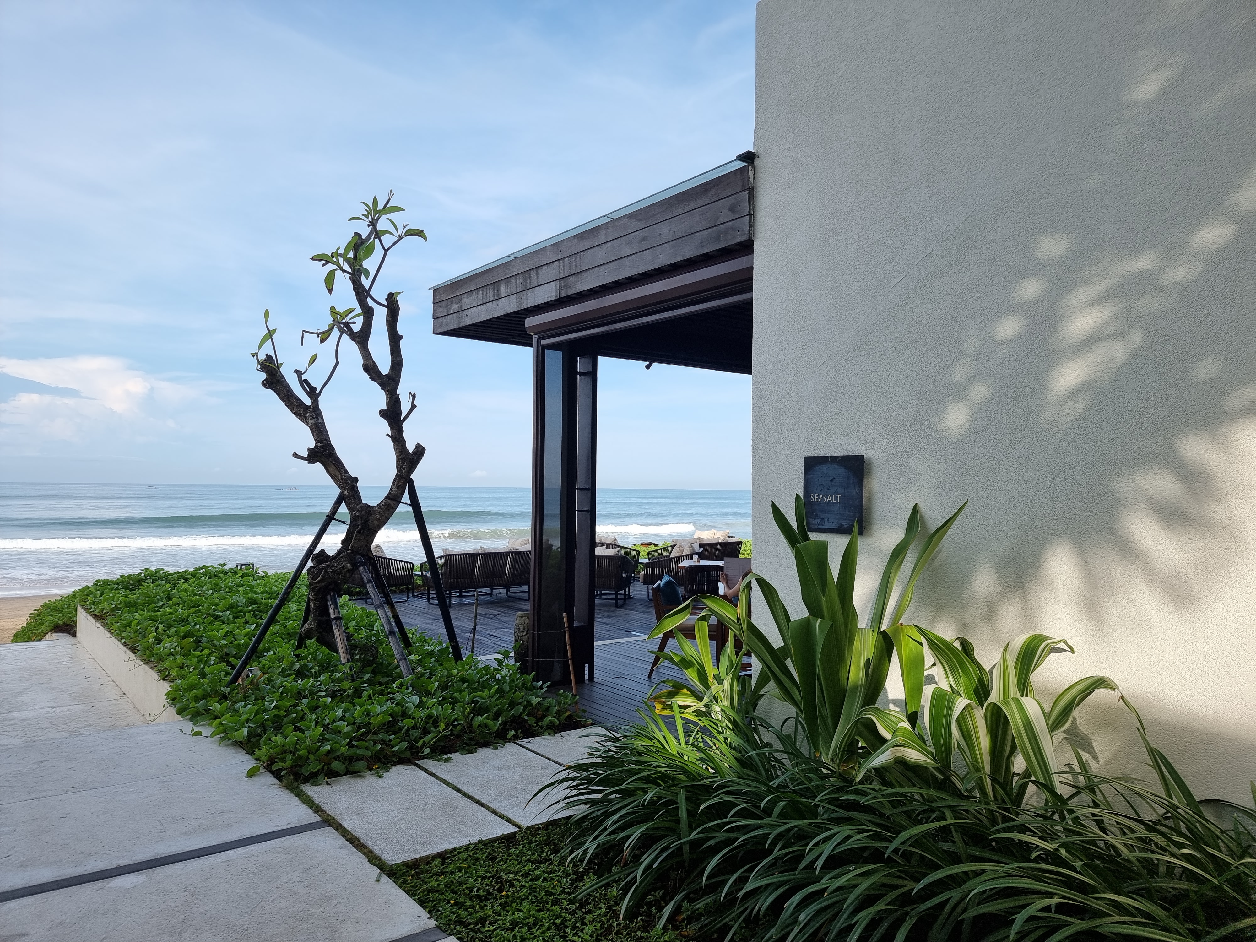 씨솔트(Seasalt) 레스토랑 아침, 낮 전경과 메뉴, 음식 사진입니다. 음식은 역시나 대체적으로 맛있었고, 한국인에 입맛에도 잘 맞는 것 같았어요. 원래 아침을 잘 먹지 않는데 매일 포식했습니다. 자리를 안내 받아서 앉으면 조식 메뉴를 가져다 주고 거이에서 주문을 하면 됩니다. 그리고 음료, 샐러드, 요거트는 뷔페로 본인이 직접 가져다 먹을 수 있어요. 맛있어서 매일 빠지지 않고 먹었던 건 나시고랭(볶음밥)과 포차(쌀국수)에요. 그 외에도 대부분 다 맛이 좋았어요. 하지만 개인적으로는 Sweet 메뉴에 있던 빵종류인 프렌치 토스트와 바나나 팬케이크은 그닥이었습니다. 그리고 동남아는 과일이 맛있다고 들었는데, 발리에 해당되는 얘기는 아니었는지 과일은 거의 전부 다 단맛이 별로 없고 밍밍한 맛이었습니다.