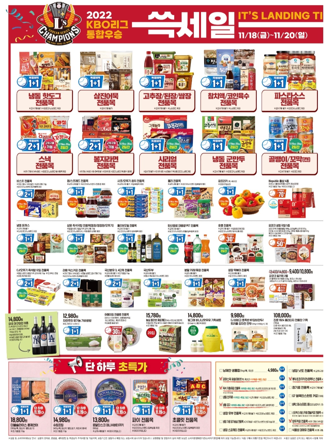 신세계그룹이 SSG랜더스의 한국시리즈 사상 첫 통합우승을 기념해 ‘쓱세일’을 엽니다. 이마트는 인기 카테고리 품목들 1+1과 최대 50% 할인 등 최대 규모의 할인 혜택을 선보였습니다. 이마트 앱에서 추가로 할인 받을수 있는 쿠폰도 받아 더 저렴하게 구매하세요.