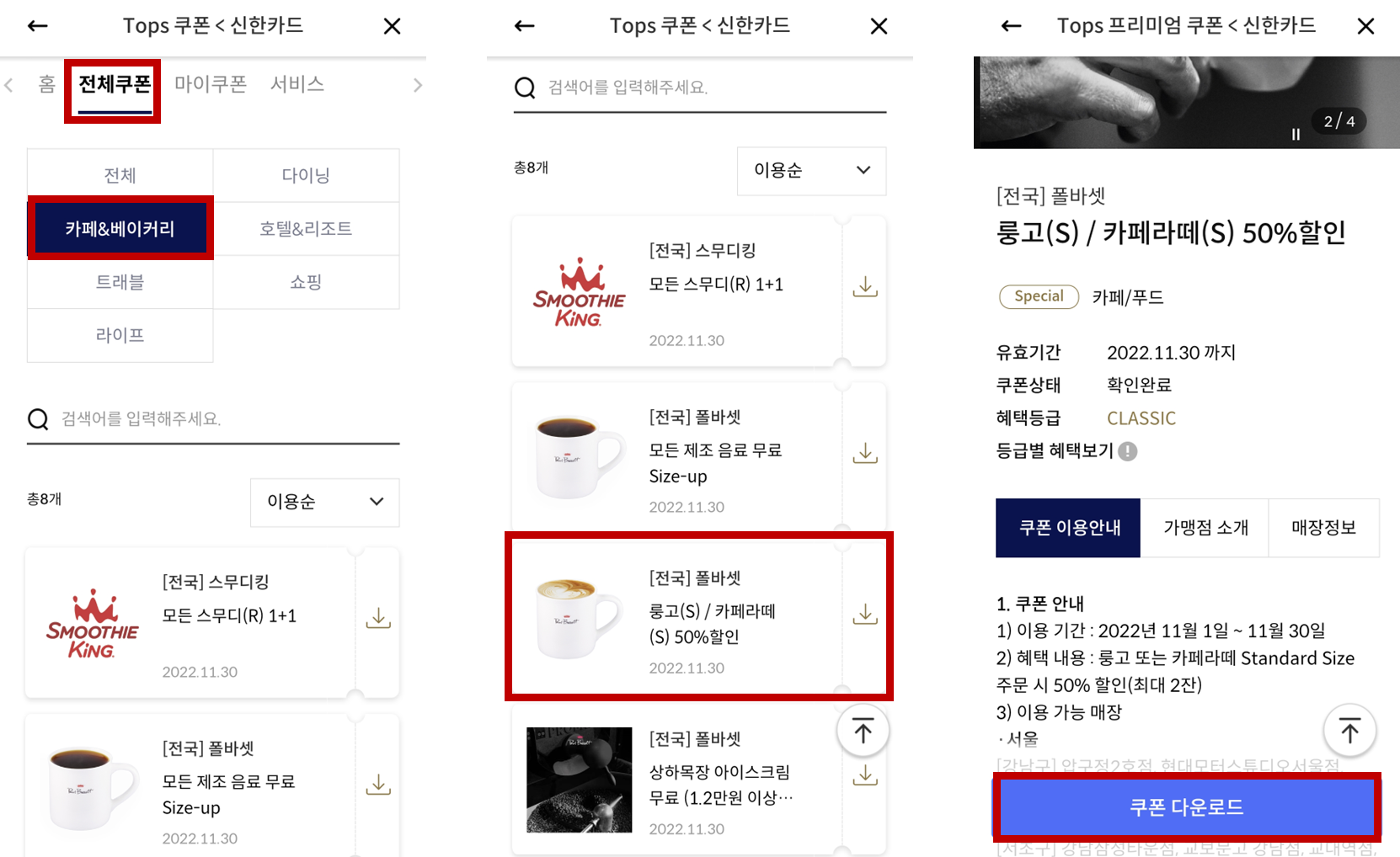 폴바셋 커피 50% 할인 받기(feat.신한카드 쿠폰)