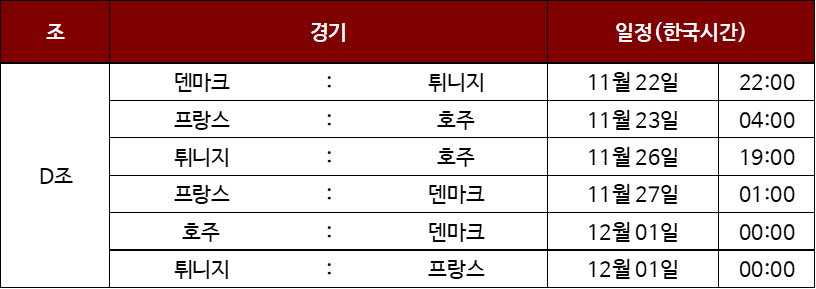 카타르 월드컵 D조 경기 일정