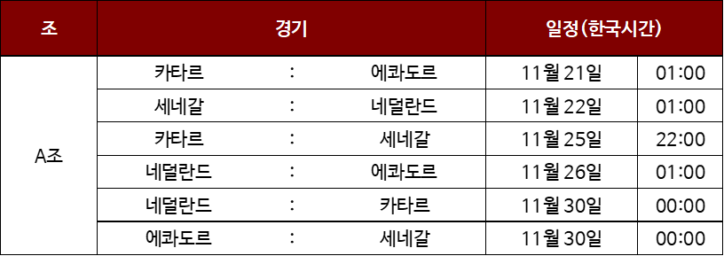 카타르 월드컵 A조 경기 일정