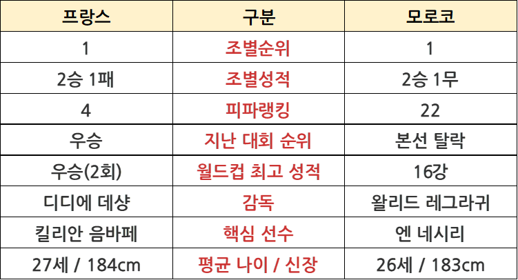 준결승 2경기 : 프랑스 vs 모로코 한국시간 12/15(목) 04:00