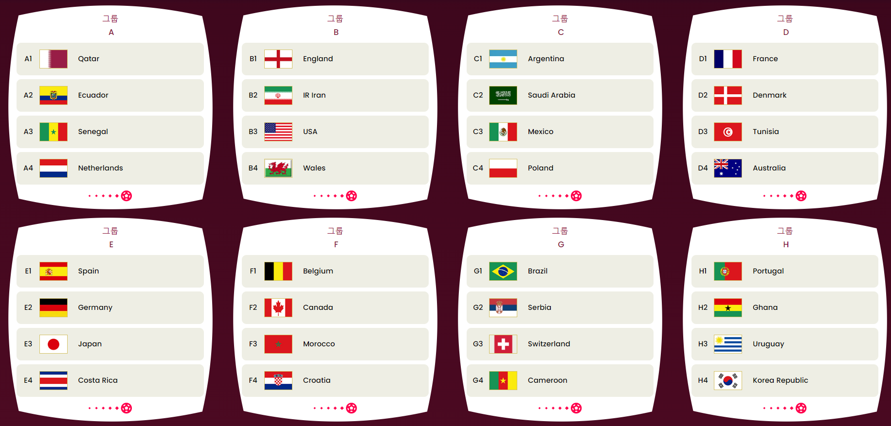 카타르 월드컵 조, 국가(FIFA랭킹)